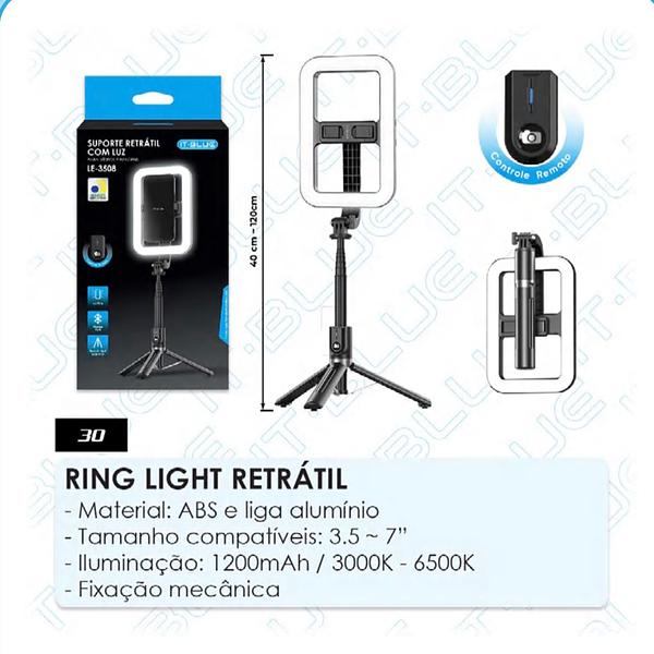 Ring light retrátil bastão seife tripe